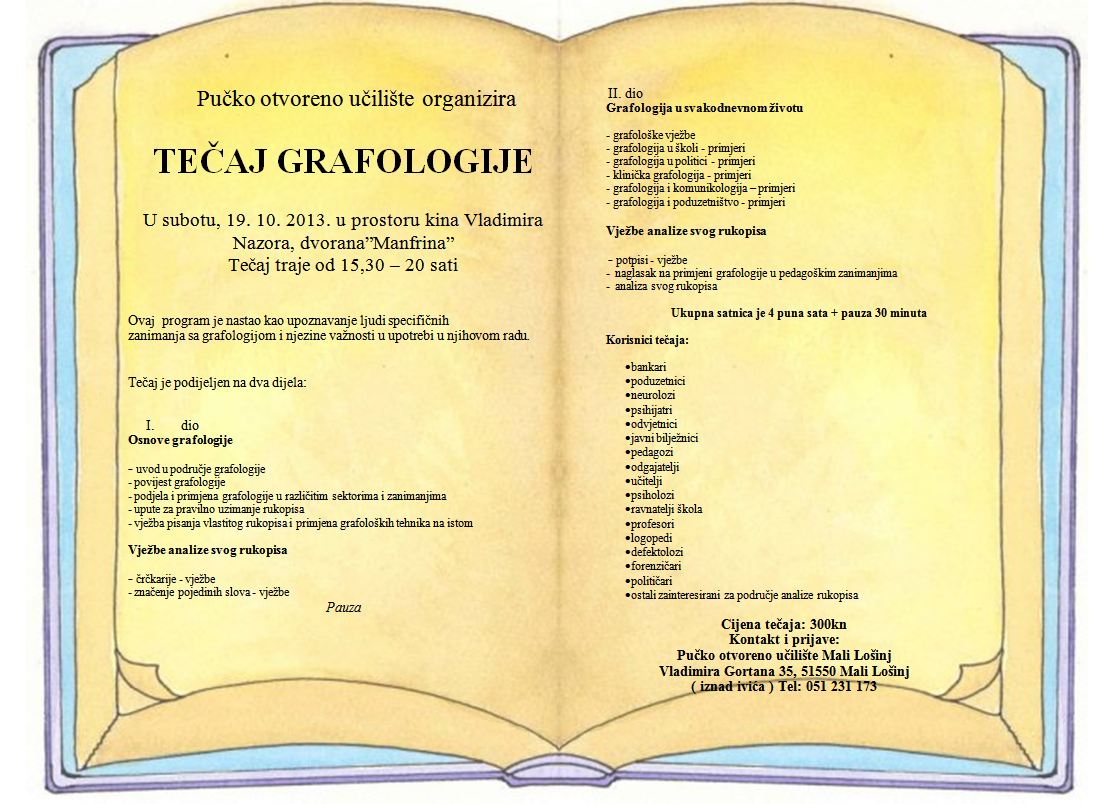 Ovaj program je nastao kao upoznavanje ljudi specifičnih zanimanja sa grafologijom i njezine važnosti u upotrebi u njihovom radu.