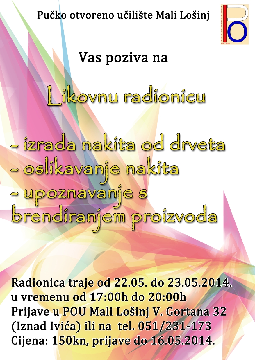Prijave u POU Mali Lošinj V. Gortana 32 (Iznad Ivića) ili na tel. 051/231-173