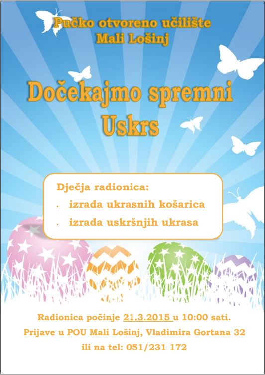 Prijave u POU Mali Lošinj, Vladimira Gortana 32 ili telefonski na 051/231 172