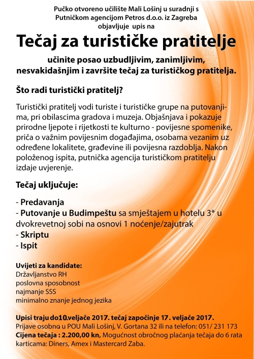 Upisi traju do 10. veljače 2017. Tečaj započinje 17. veljače 2017.