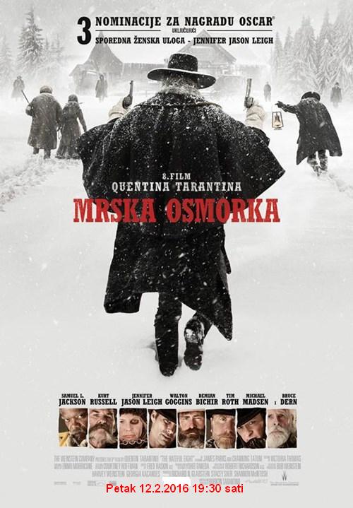 | U osmom po redu Tarantinovom filmu možete vidjeti, kao što se i očekuje od dotičnog redatelja, krupnog kalibra(po pitanju oružja i glumaca), opake replike, puno prolivene krvi i veliku navalu testosterona! Radnja je smještena desetak godina nakon Građanskog rata i prati dogodovštine Marquisa Warrena (SamuelL.Jackson), bivšeg vojnika Unije i lovca na glave blokiranog snježnom olujom u malom gradiću u Coloradu. U zanimljivoj vožnji se igrom slučaja upoznaje sa Russellovim likom Johnom Ruthom koji prevozi zatvorenicu Daisy (Jennifer Jason Leigh)te još petero koji će zaokružiti ‘osmero’ iz naslova filma |
