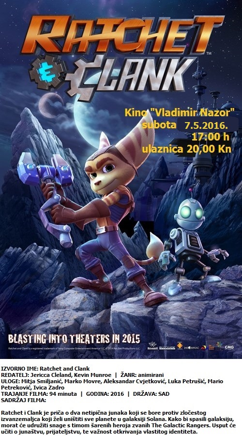 Ratchet i Clank je priča o dva netipična junaka koji se bore protiv zločestog izvanzemaljca koji želi uništiti sve planete u galaksiji Solana. Kako bi spasili galaksiju, morat će udružiti snage s timom šarenih heroja zvanih The Galactic Rangers. Usput će učiti o junaštvu, prijateljstvu, te važnost otkrivanja vlastitog identiteta. |
