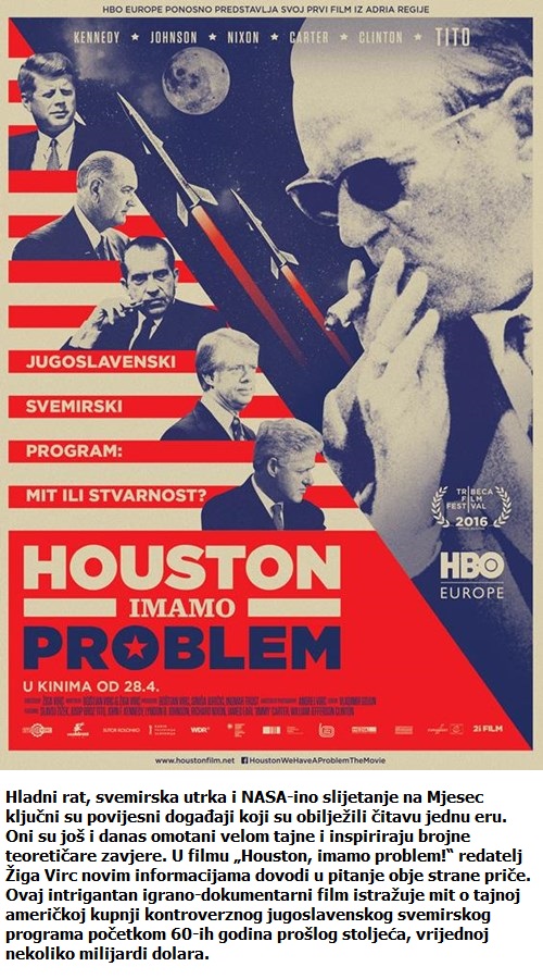 Hladni rat, svemirska utrka i NASA-ino slijetanje na Mjesec ključni su povijesni događaji koji su obilježili čitavu jednu eru. Oni su još i danas omotani velom tajne i inspiriraju brojne teoretičare zavjere. U filmu „Houston, imamo problem!“ redatelj Žiga Virc novim informacijama dovodi u pitanje obje strane priče. Ovaj intrigantan igrano-dokumentarni film istražuje mit o tajnoj američkoj kupnji kontroverznog jugoslavenskog svemirskog programa početkom 60-ih godina prošlog stoljeća, vrijednoj nekoliko milijardi dolara. |