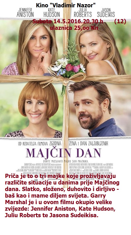 Priča je to o tri majke koje proživljavaju različite situacije u danima prije Majčinog dana. Slatko, složeno, duhovito i dirljivo - baš kao i mame diljem svijeta. Garry Marshal je i u ovom filmu okupio velike zvijezde: Jennifer Aniston, Kate Hudson, Juliu Roberts te Jasona Sudeikisa. |