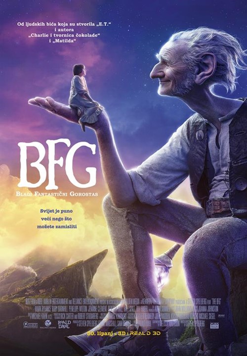 BFG je uzbudljiva priča o desetogodišnjoj djevojčici Sophie iz Londona i misterioznom divu koji je upoznaje sa čudnovatim i opasnim svijetom divova. Film je temeljen na knjizi „BFG”, slavnog Roalda Dahla, koja je objavljena 1982. godine i od tada oduševljava čitatelje svih uzrasta. Knjiga, za koju je ilustracije napravio Quentin Blake, prethodno je adaptirana kao animirani film za britansku televiziju 1989. godine. Nova adaptacija ujedinila je ponovno Spielberga i scenaristicu neponovljivog E.T.-a, Melissu Mathison. U ulozi djevojčice, Sophie ćemo gledati Ruby Barnhill, a ulogu dobroćudnog diva dobio je Mark Rylance. Ostale uloge tumače Rebecca Hall, Bill Hader, Jemaine Clement i Penelope Wilton. |