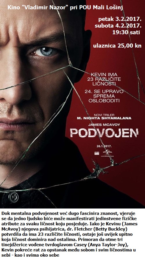 Dok mentalna podvojenost već dugo fascinira znanost, vjeruje se da jedno ljudsko biće može manifestirati jedinstvene fizičke atribute za svaku ličnost koju posjeduje. Iako je Kevinu (James McAvoy) njegova psihijatrica, dr. Fletcher (Betty Buckley) potvrdila da ima 23 različite ličnosti, ostaje još uvijek upitno koja ličnost dominira nad ostalima. Primoran da otme tri tinejdžerice vođene tvrdoglavom Casey (Anya Taylor-Joy), Kevin pokreće rat za opstanak među sobom i svim ličnostima u sebi - kao i svima oko sebe |