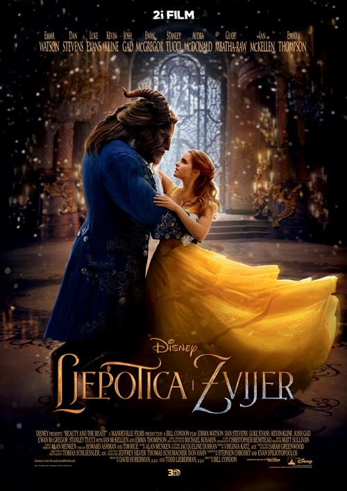 Priča i likovi koje publika poznaje i voli oživljava u spektakularnoj igranoj adaptaciji Ljepotice i zvijeri, Disneyjeva animiranog klasika koji postaje zadivljujuć filmski događaj slaveći jednu od najdražih priča ikad ispričanih. Ljepotica i zvijer fantastično je putovanje Belle, pametne, lijepe i samostalne djevojke koju Zvijer zarobi u svom dvorcu. Unatoč svojim strahovima, Belle se sprijatelji sa začaranim osobljem te uviđa plemenito srce i istinskog princa koji se kriju iza Zvijerova strašnog izgleda. U filmu glume: Emma Watson kao Belle; Dan Stevens kao Zvijer; Luke Evans kao Gaston, zgodan, ali plitak seljak koji zavodi Belle; Kevin Kline kao Maurice, Bellin otac; Josh Gad kao Le Fou, Gastonov strpljivi ađutant; Ewan McGregor kao Lumiere, svijećnjak; Stanley Tucci kao Maestro Cadenza, čembalo; Gugu Mbatha-Raw kao Plumette, čarobnica; Nathan Wich kao Chip, šalica; Ian McKellan kao Cogsworth, sat; Emma Thompson kao čajnik, Gđa Potts. |