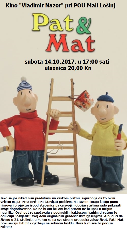 Iako se još nikad nisu predstavili na velikom platnu, sigurno je da to ovim velikim majstorima neće predstavljati problem. Na tavanu imaju kutiju punu filmova i projektor ispod stepenica pa će svojim obožavateljima rado prikazati svoje dogodovštine. No ne bi oni bili oni kad pritom ne bi upali u milijun neprilika. Ovaj put se suočavaju s podmuklim kaktusom i suhim drvetom te odlučuju “osvježiti” svoj dom originalnim građevinskim rješenjima. A budući da živimo u 21. stoljeću, u kojem se na sve strane propagira zdrav život, Pat i Mat pokušavaju biti fit i vježbaju na sobnom biciklu. Hoće li im sve to poći za rukom?