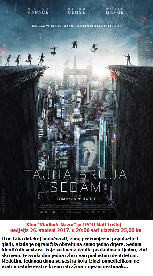 | U ne tako dalekoj budućnosti, zbog prekomjerne populacije i gladi, vlada je ograničila obitelji na samo jedno dijete. Sedam identičnih sestara, koje su imena dobile po danima u tjednu, živi skriveno te svaki dan jedna izlazi van pod istim identitetom. Međutim, jednoga dana se sestra koja izlazi ponedjeljkom ne vrati a ostale sestre krenu istraživati njezin nestanak… |