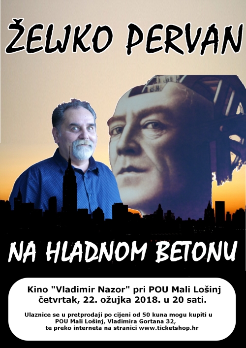 Poslije dugo vremena u Malom Lošinju (Kino dvorana "Vladimir Nazor" pri POU Mali Lošinj), svoj novi stand up show pod naslovom ''Na hladnom betonu'', predstaviti će Željko Pervan, i to u četvrtak, 22. ožujka 2018. u 20 sati.