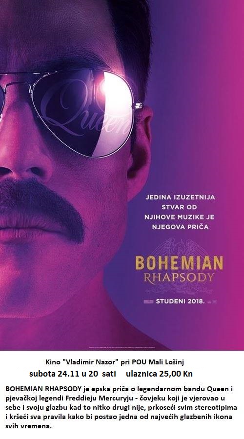 BOHEMIAN RHAPSODY je priča o ljubavi, boli, prihvaćanju i da, sjajnoj glazbi. Slavljenje Freddijeva talenta i legendarnog rock benda, koji je svojom glazbom i osjećajem za avanturu i specifičnim nastupima prekršio sva pravila tadašnje scene. Pjevačku legendu glumi Rami Malek, američki glumac egipatskog podrijetla koji nevjerojatno sliči Freddieju. Gwilym Lee igra ulogu gitarista Briana Maya, Ben Hardy je u ulozi bubnjara Rogera Taylora, a Joseph Mazzello nastupa kao basist John Deacon. Mary Austin, ženu za koju je Freddie tvrdio da je ljubav njegovog života igra Lucy Boynton, a u filmu se pojavljuje i Mike Myers